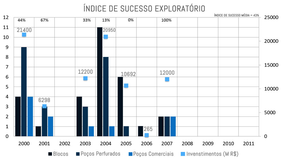 Toda essa atividade resultou numa taxa de sucesso exploratório de 43% e na descoberta de oito campos de óleo e gás que se encontram hoje na etapa de desenvolvimento e produção, incrementando as reservas para mais de 13 milhões de barris de óleo e 205 milhões de metros cúbicos de gás.